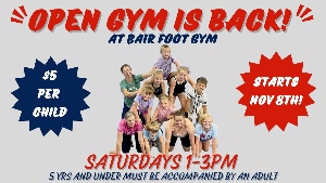 Mark your calendars! Our first Open Gym of the season is on November 8th! We will have an open gym every Saturday through the end of March. With a few exceptions for holidays. 2 hours of playtime for $5! It's a great way for kids to be active during the cold, snowy season. Any questions, text Katie 208-869-9641