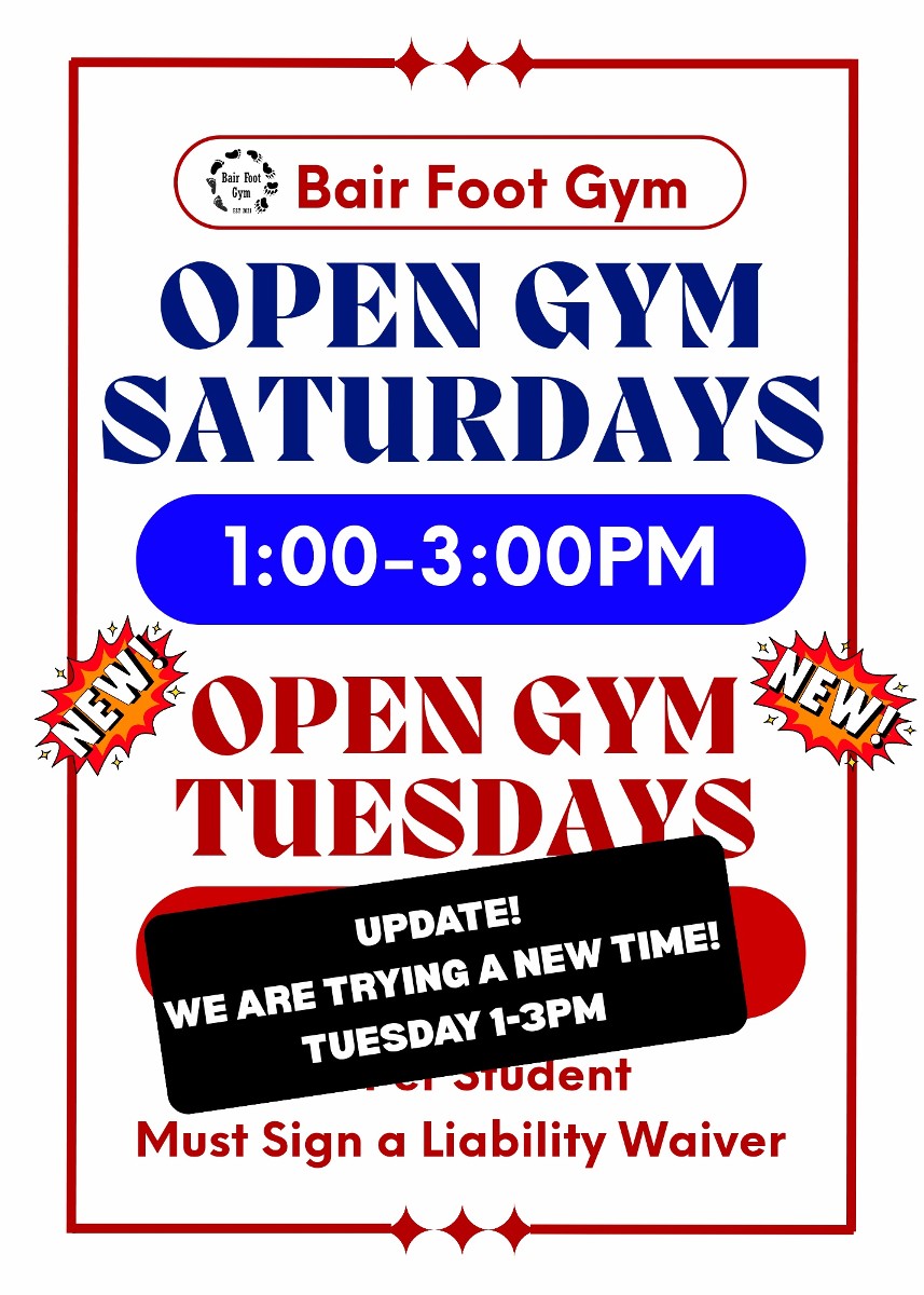We are trying out a few new weekday open gym times for homeachoolers and young kids still at home.